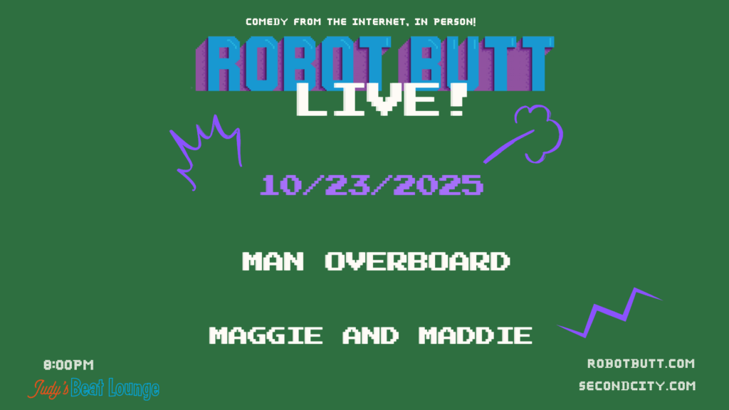 Want A Free Robot Butt T-Shirt? I Will Give You One At This Week’s Robot Butt Live! Thursday Night At Second CityOctober 28, 2025